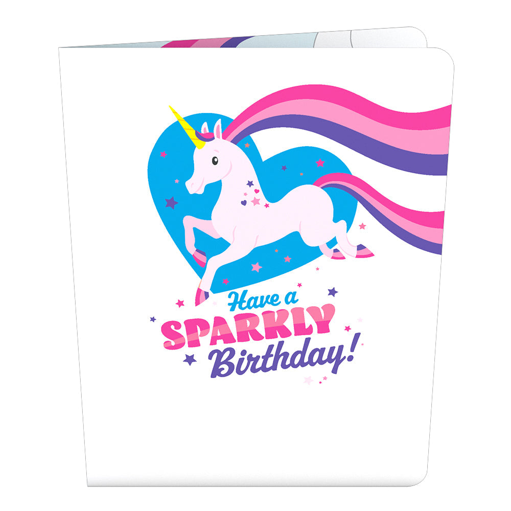 "Have a sparkly birthday!" is written on the cover of this Playpop Card. Celebrate the unicorn lover in your life with this magical birthday design.