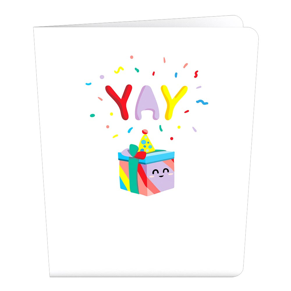 "Yay!" is written on the cover of this Playpop Card. Balloons, confetti, presents -- oh my! Celebrate any special birthday with this confetti-worthy design.