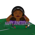 The Happy Juneteenth greeting card is 5 inches wide by 7 inches tall.