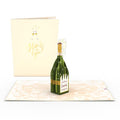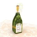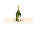 The front?cover of this celebration?card features two laser cut champagne flutes clinking in a toast above shiny, gold script that reads "Here's to You!" Once opened, a celebratory gold and green champagne bottle?filled with bubbles pops-up from the center of the card. The white label of the bottle reads "Congrats" in burgundy script. The champagne theme continues on the card's pale golden?inner panels as champagne bubbles float up towards white sashes.?