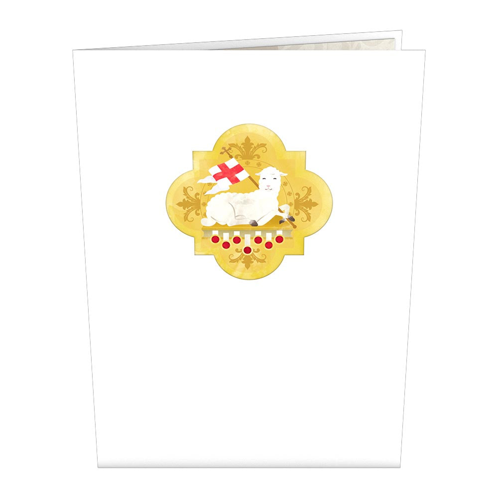 The Holy Lamb pop-up card is 5 inches wide by 7 inches tall.