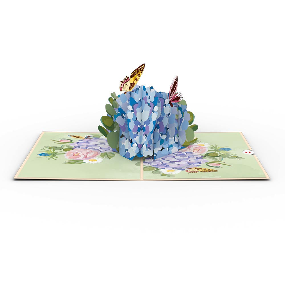 The Hydrangea Butterflies Pop-Up Card is 5 inches wide by 7 inches tall.