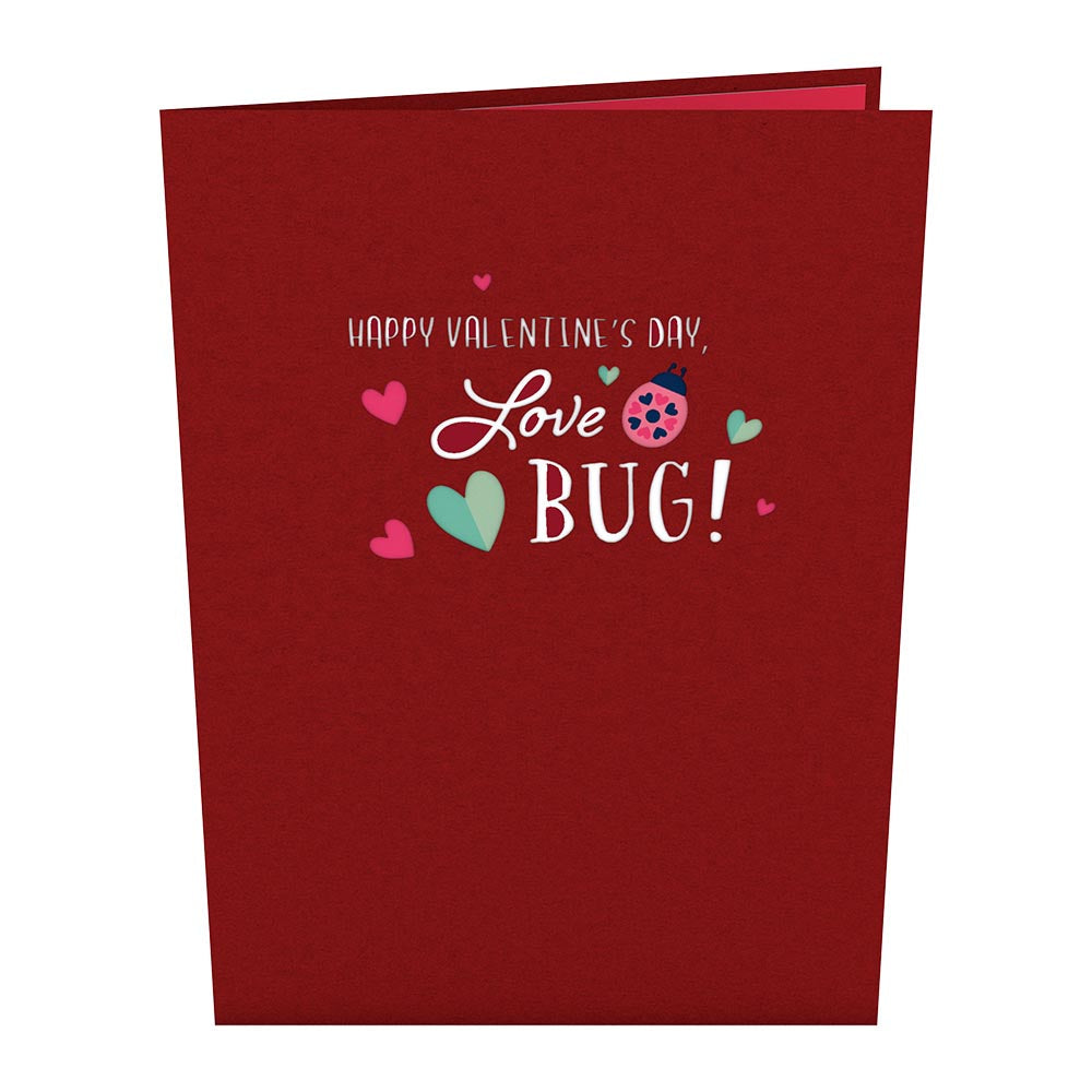 The Love Bug pop-up card is 5 inches wide by 7 inches tall.