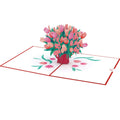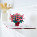 ? As tulips are thought to be emblems of true and perfect love, this unique 3D card is a marvelous token of affection and appreciation for a loved one. Images of springtime, tulips also invoke a sense of joy and growth. Unlike real bouquets, these handmade paper flowers will never perish, acting as a gift your recipient can cherish and display forever. This Valentine's Day, show that special someone you care by gifting them the Love Tulips pop-up card