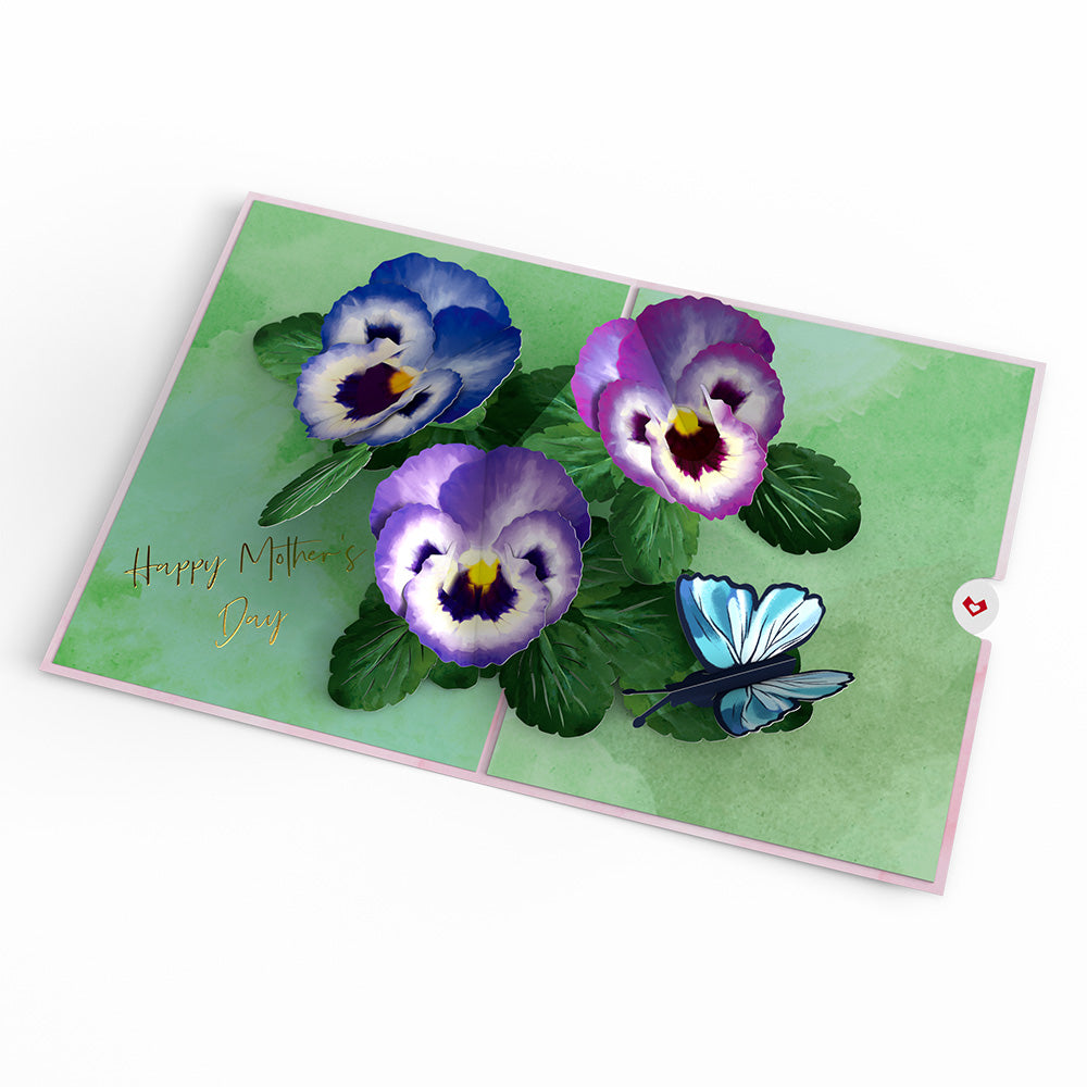 Description:?Celebrate your mom this Mother¡¯s Day with this pop-up card featuring pansies and butterflies. These sweet and beautiful flowers are sure to leave a lasting impression.