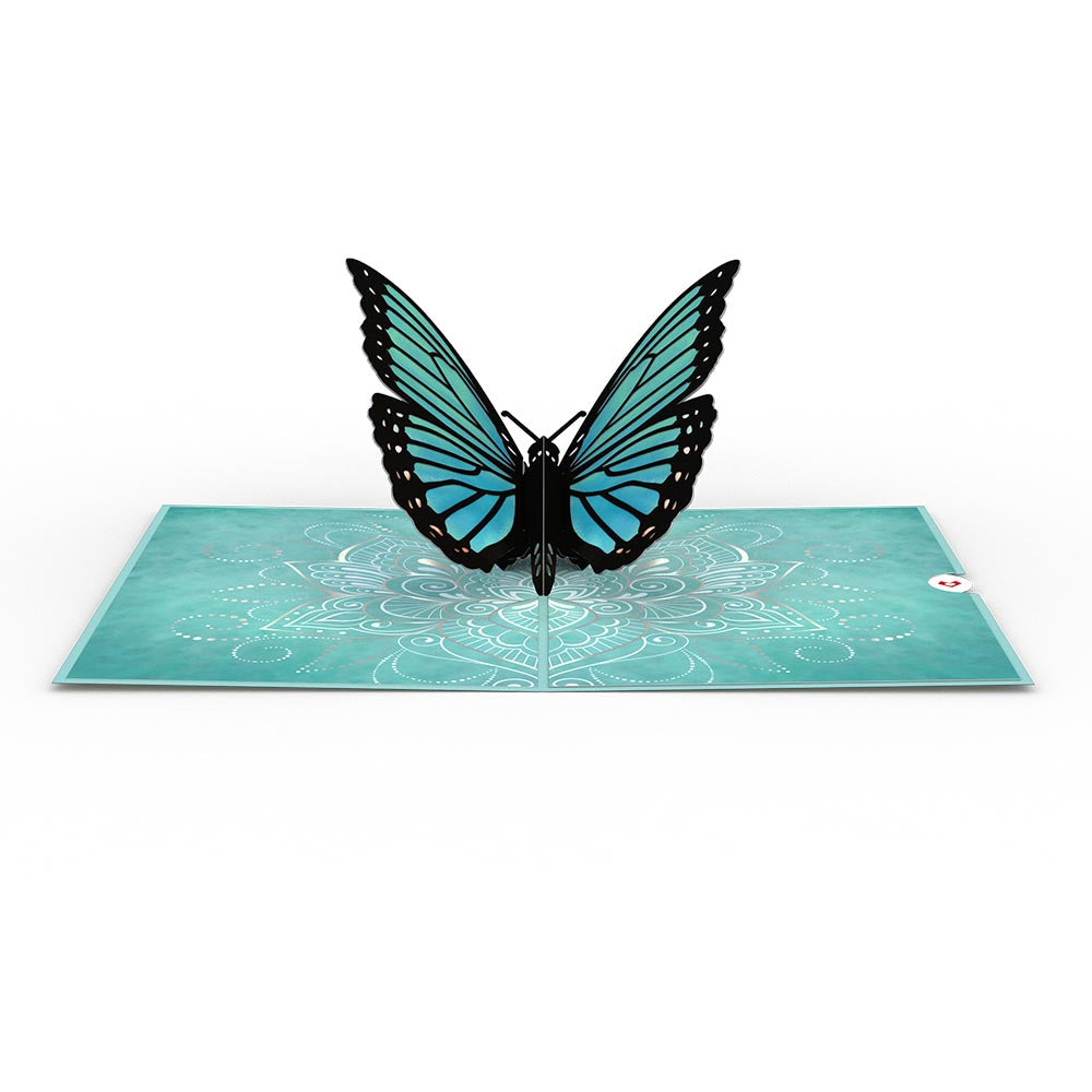 The Mother's Blue Morpho pop-up card is 5 inches wide by 7 inches tall.