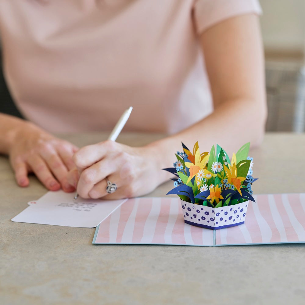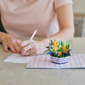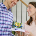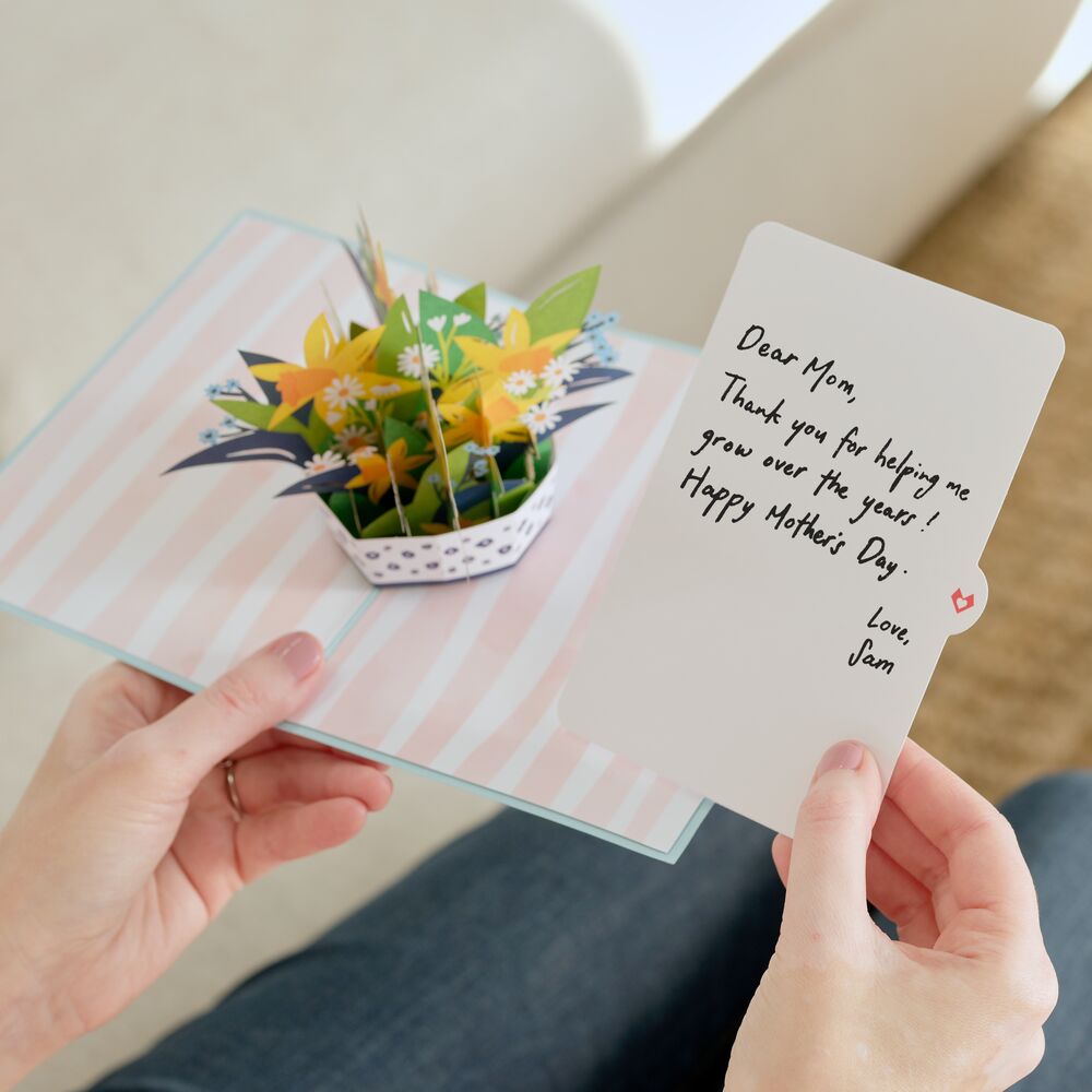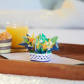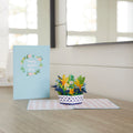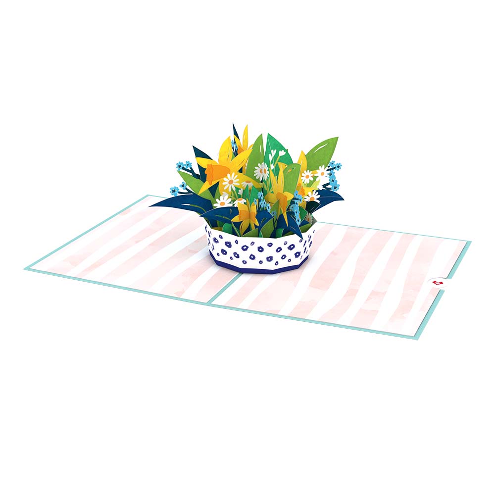 The Mother's Day Daffodil Basket pop-up card is 5 inches wide by 7 inches tall.