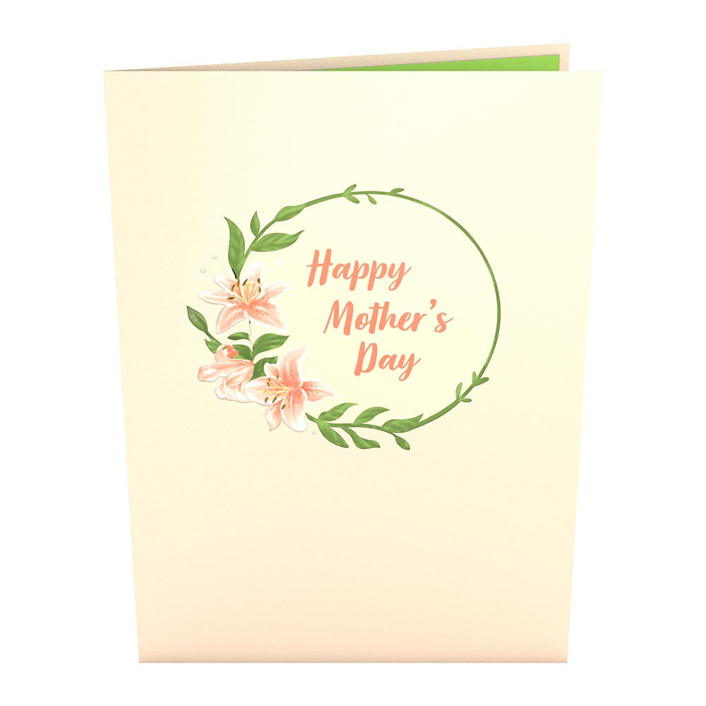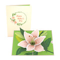 The Mother's Day Lily Bloom pop-up card is 5 inches wide by 7 inches tall.