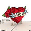 The Mother's Day Tattoo Heart pop-up card is 5 inches wide by 7 inches tall.