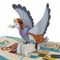 The NYC Messenger Pigeon Pop-Up Card is 5 inches wide by 7 inches tall.