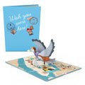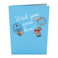 This 3D pop-up card will let that special someone know you're thinking of them with a ¡°Wish You Were Here!¡± message. The blue front cover features various stamps and seals from travels. Upon opening, a pop-up messenger bird with goggles on its head, a letter in its beak, and a satchel around its wing, appears ready to deliver your message. This bird sends greetings from New York City to let your loved one know you care. ? Size: