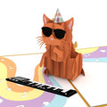 The Party Cat pop-up card is 5 inches wide by 7 inches tall.