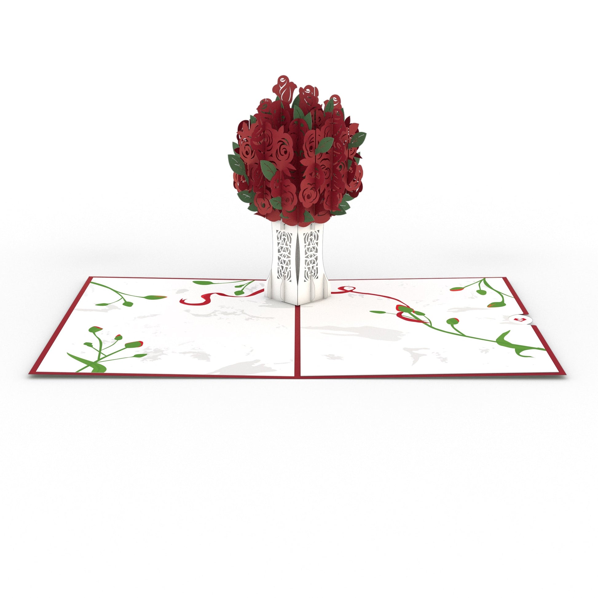 Our design team set out to create a card that is simultaneously elegant and impressive. Roses are a timeless symbol of love and affection, but they wither far too soon. Our Rose Bouquet Red pop up card is forever, like your love.