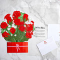 Quantity: One pop-up Red Rose Grand Bouquet with a MicasShine Note, packaged in a secure box