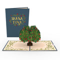 "Shana Tova"?¡ª meaning "good year" in Hebrew?¡ªis written on the cover of this celebratory pop-up card. Upon opening, a beautiful 3D pomegranate tree?appears. Typically eaten on Rosh Hashanah, pomegranates symbolize righteousness, knowledge, and wisdom. They're said to have 613 seeds, representing the 613 commandments of the Torah.?