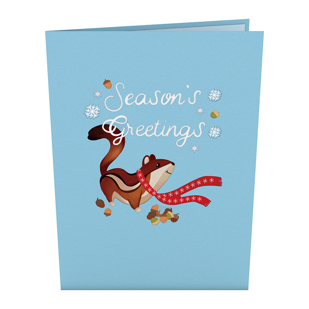 Use this Season's Greetings Chipmunk card as an early gift to a loved one to spread holiday cheer. The pull-out note provides plenty of space to write about your excitement for the holiday and your desire to spend quality time with people you love. With this pop-up card, you're emphasizing that you're increasing your stash of presents in the same way the chipmunk is collecting acorns