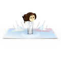 The Princess Leia: Rebel pop-up card is 5 inches wide by 7 inches tall.